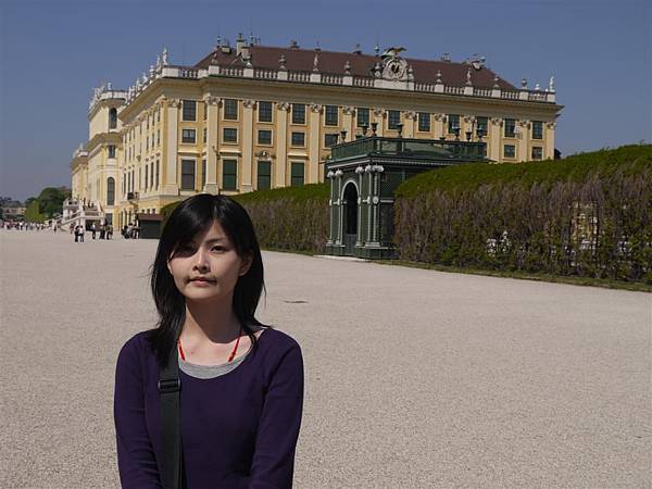 Check in完後,把能脫的衛生衣盡量脫,前往第一個重要景點熊布倫宮。題外話,維也納有不少宮殿可以參觀,最有名的就屬霍夫堡、熊布倫宮和貝維德雷宮,當初討論行程時,問又端想不想多看一些皇宮,又端馬上搖頭,說:「已經看很多了,而且再華麗也比不過凡爾賽宮。」(囧)原本一個宮都沒排,眼看行程太虛而且我又沒看過,還是排了兩個。又端補充一句:「買便宜的票就可以了。」